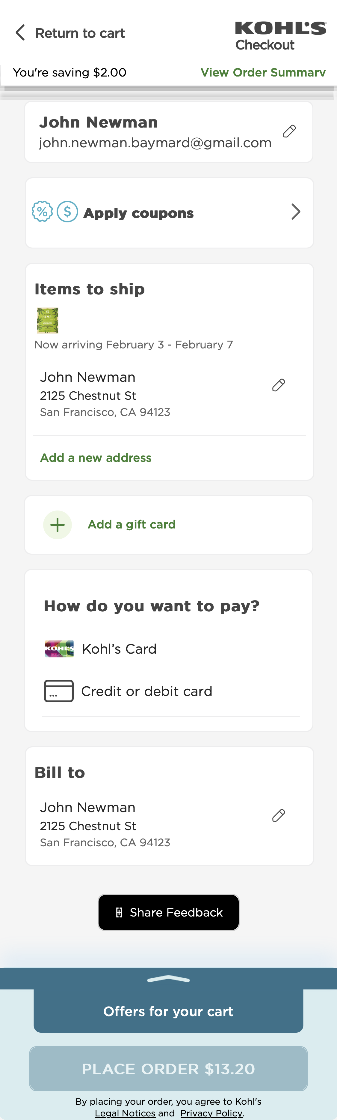 Kohl S Mobile Payment 129 Of 794 Payment Examples Baymard Institute